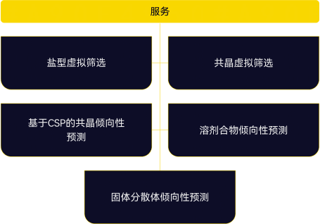 该平台支持选择盐型的反离子及溶剂、共晶配体及溶剂、避免溶剂化物形成的溶剂,以及固体分散体载体