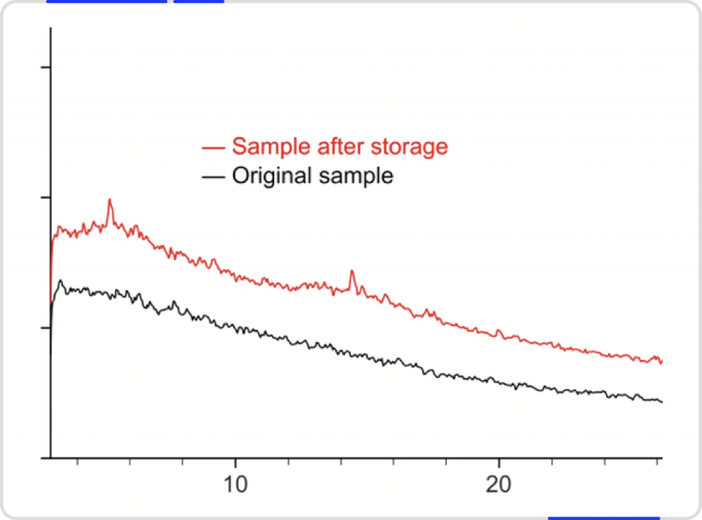 某创新药研发案例中,客户采用 ASD 技术提升难溶药物的生物利用度,却在加速稳定性试验(3 个月/40℃/75%RH)中发现异常现象,稳定性样品的 XRPD 谱图中检测到微弱衍射峰(2θ=3°-20°区间,如图 1 所示),本项目需要快速明确 ASD 体系中结晶组分结构,以便能快速重新进行 ASD 配方研究,避免对后期研发造成较大影响。