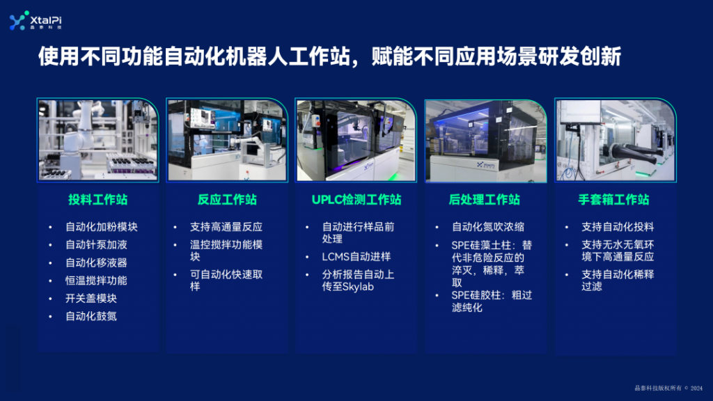 晶泰科技可提供包含自动化设备采购与特定应用自动化机器人定制开发、数字化与智能化软件系统以及实验室升级改造的一站式服务。
